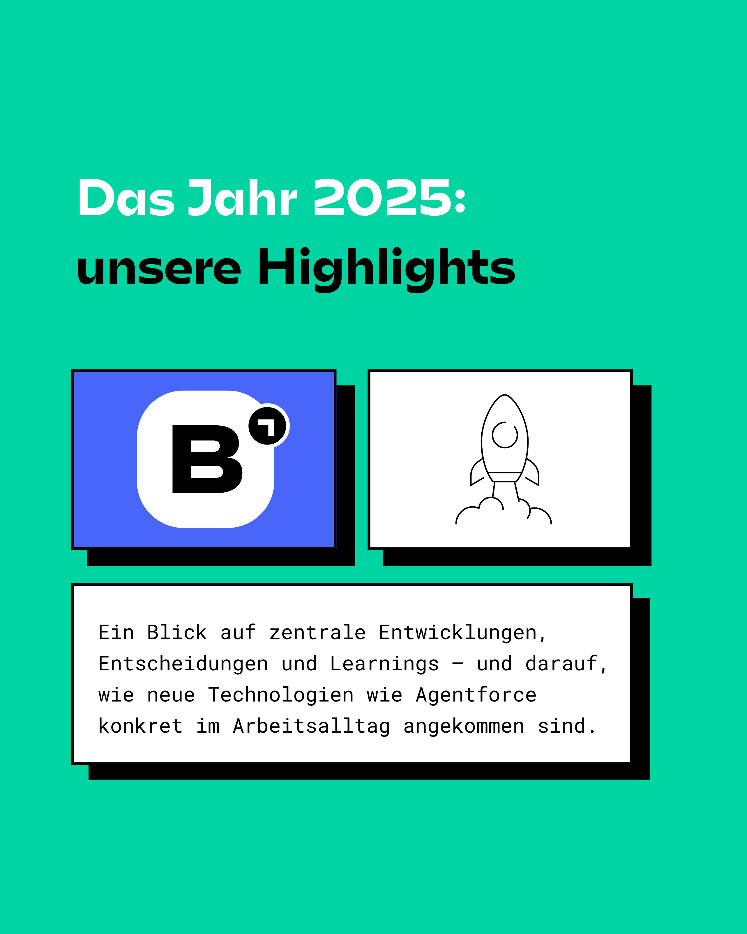 In vielen Kundenprojekten war unsere Rolle 2025 die eines strategischen Sparringspartners und Implementierungspartners zugleich. Gemeinsam mit Kund:innen haben wir geklärt, welche Use Cases Priorität haben, wie vorhandene Systeme und Datenmodelle aussehen und wie Agentforce schrittweise eingebettet werden kann, ohne Teams zu überfordern.